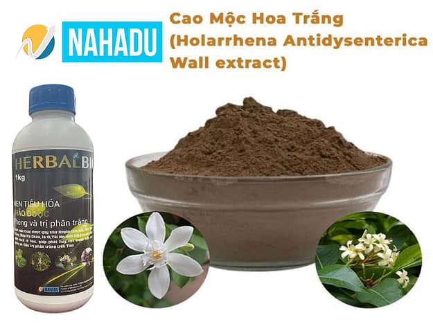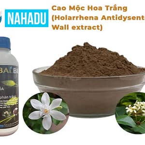 Cao Mộc Hoa Trắng được chiết xuất từ cây mộc hoa trắng. Sản phẩm có dạng bột hoặc lỏng màu nâu, mùi thơm đặc trưng. Các tác dụng nổi bật của Cao Mộc Hoa Trắng trong điều trị bệnh đường ruột trên tôm bao gồm:
